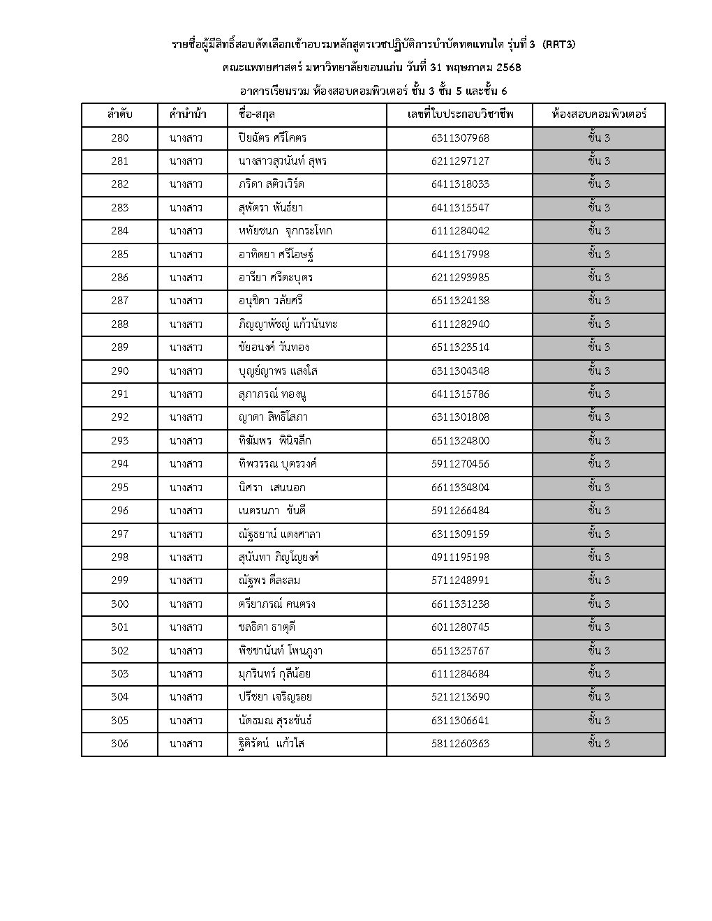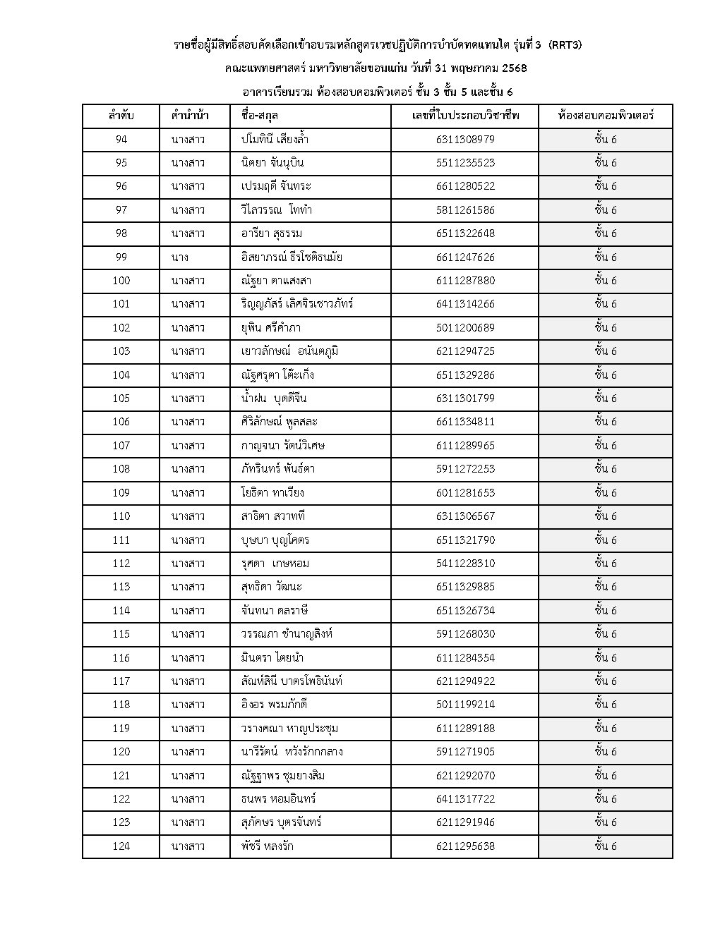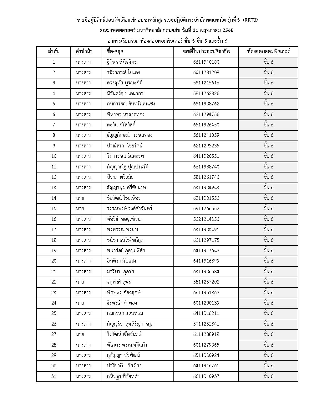 - รายงานตัว ณ อาคารเรียนรวม ชั้น 3 ชั้น 5 และ ชั้น 6 ตามที่ระบุในรายชื่อผู้มีสิทธิ์สอบ
