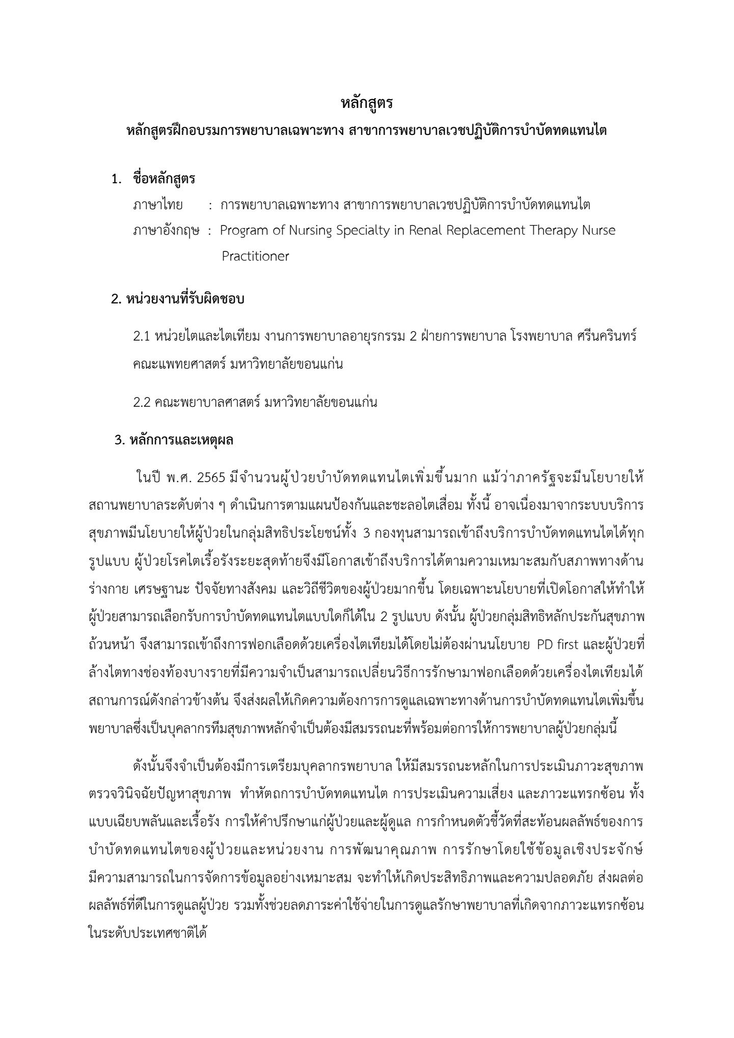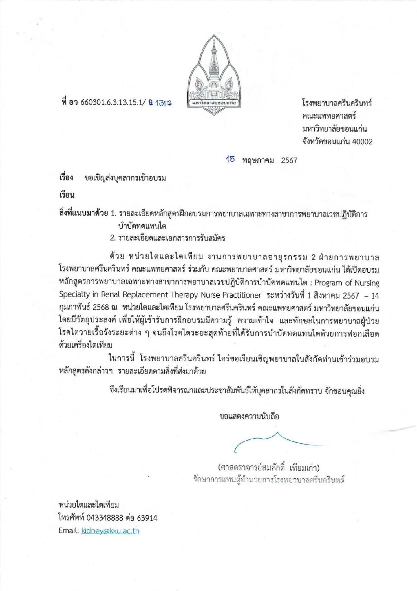 เปิดหลักสูตรฝึกอบรมการพยาบาลเฉพาะทาง สาขาการพยาบาลเวชปฏิบัติการบำบัดทดแทนไต